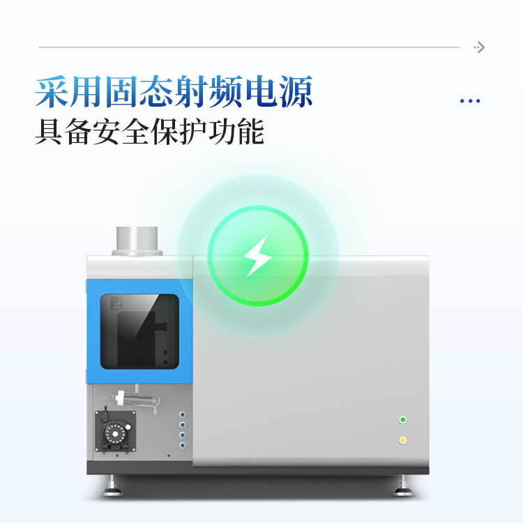 仪器采用的射频电源,具有体积小、输出效率高、输出功率稳定,带有水路、气路及过载等各类安全保护功能,大大提升仪器的安全性,减小了仪器的故障率。